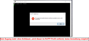 Ziel: der Zugang zu einem Server per SSH-Verbindung soll nur noch mit Authentifizierung per Schlüsselpaar gestattet werden.