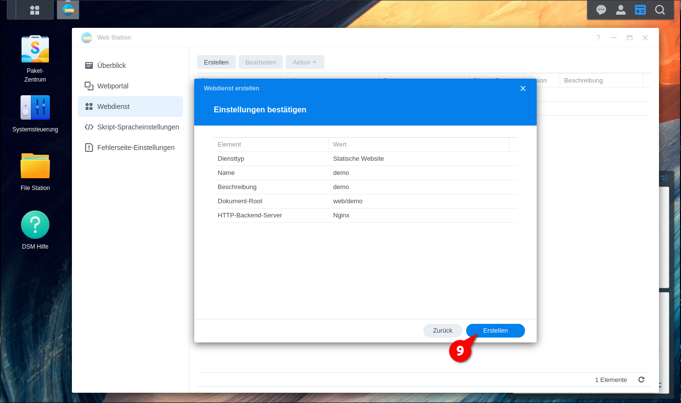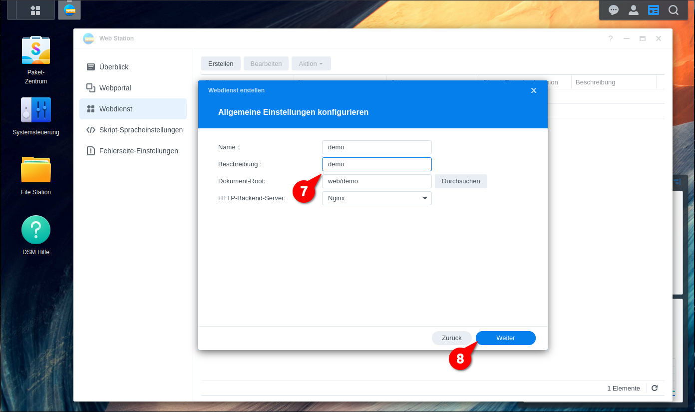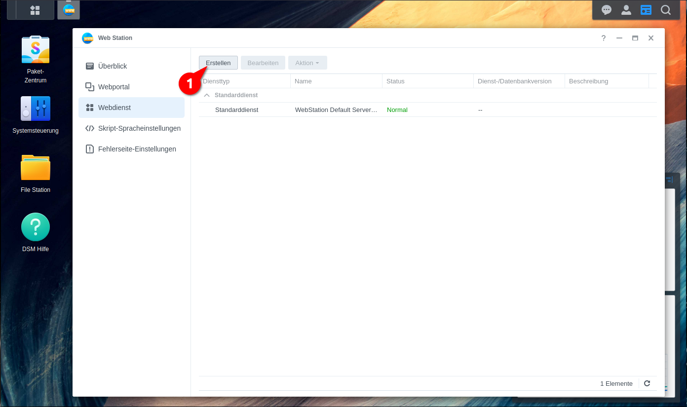 Web Station, Erstellung eines Web-Dienstes im Abschnitt Webdienst