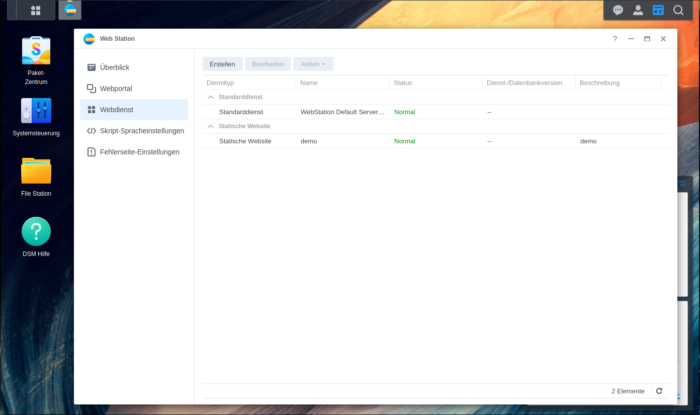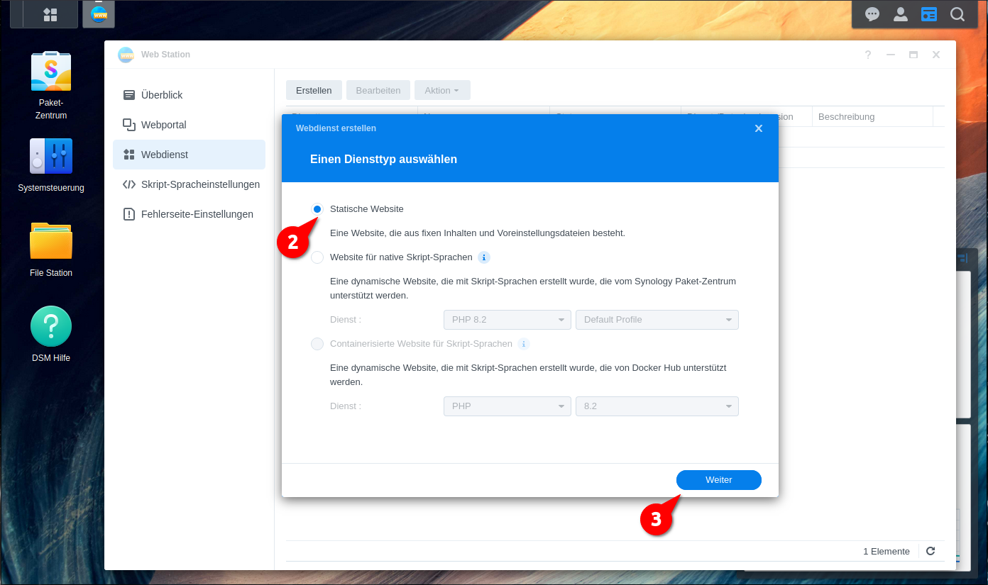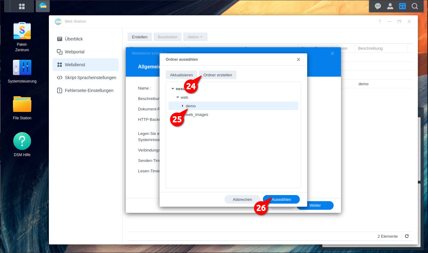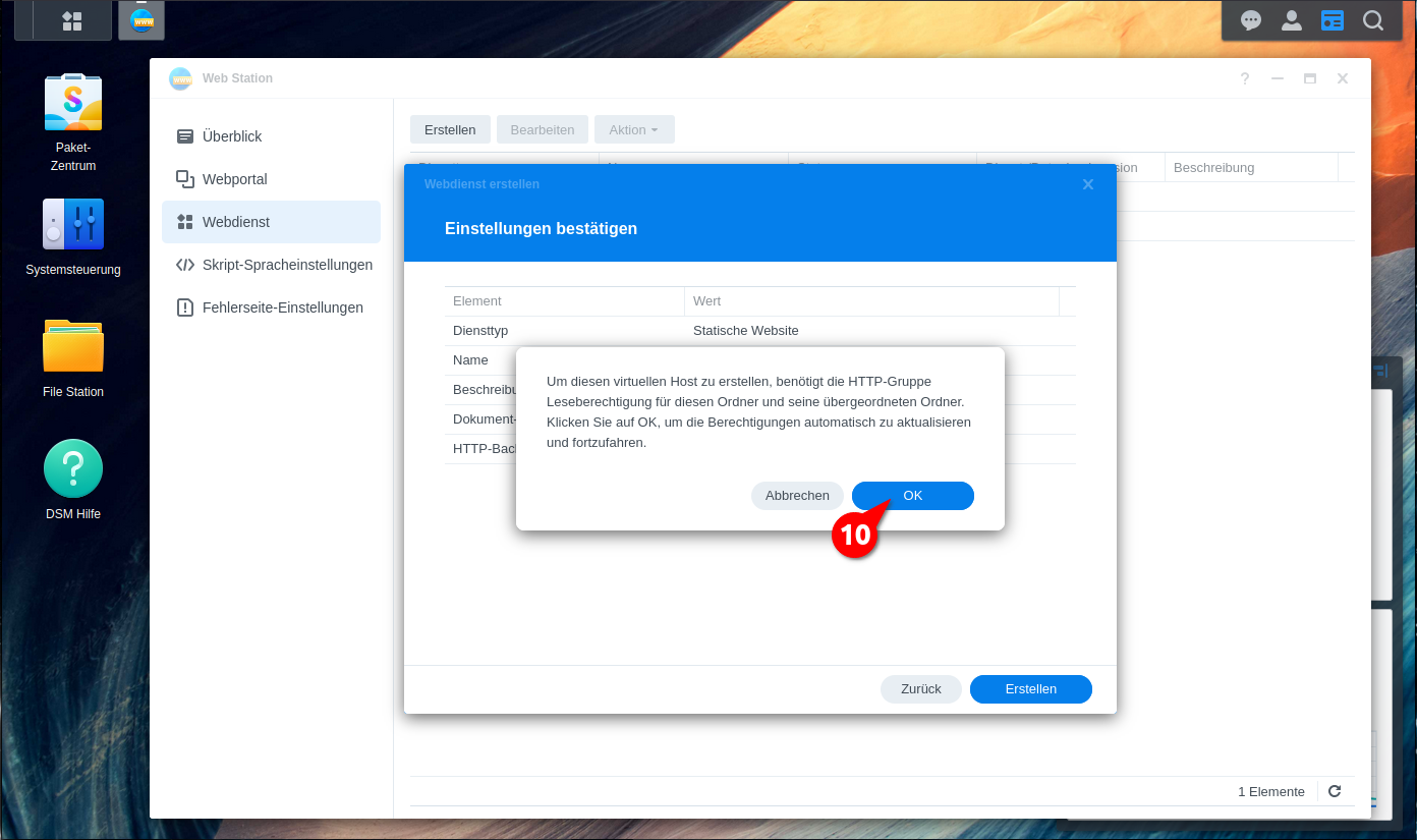 Web Station, Erstellung eines Web-Dienstes im Abschnitt Webdienst