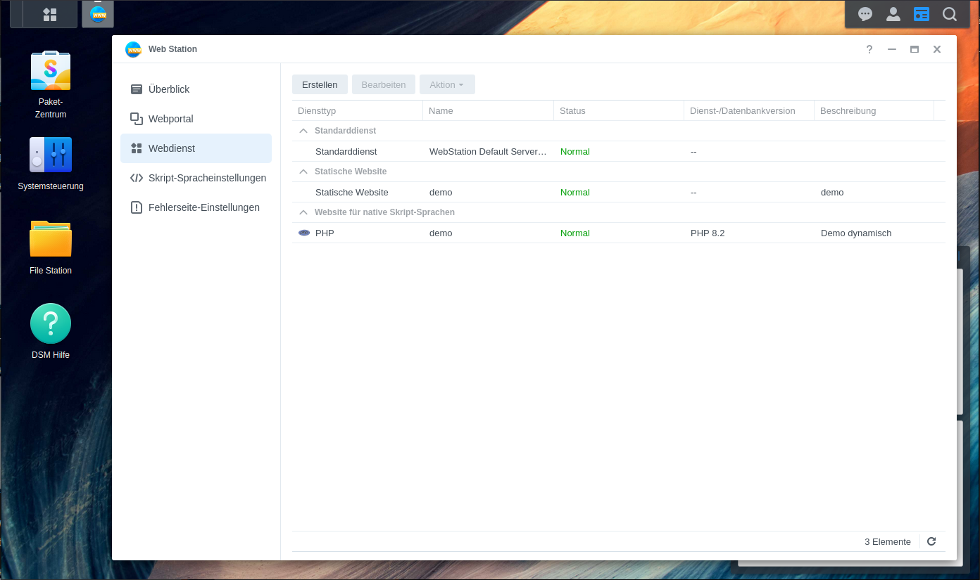 • Auf der Synology Diskstation ist mindestens Synology DSM 7.2 und mindestens das Paket "Web Station" installiert in Version 4.