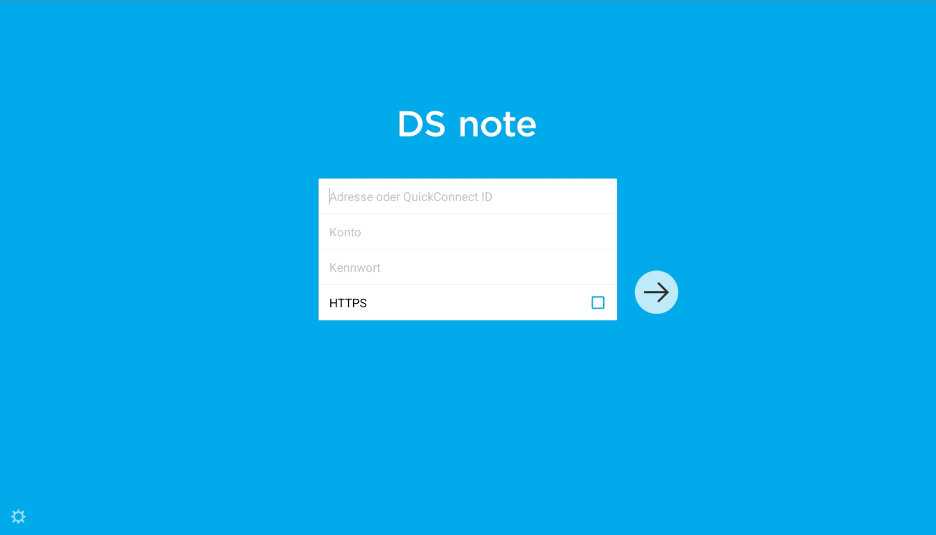 Die nächsten Schritte erfolgen an deinem Android Gerät. Zunächst musst du die kostenfreie App DS note aus dem Google-Playstore auf dein Gerät laden und installieren. Dann öffnest du die App. Es erscheint ein Anmeldebildschirm:
