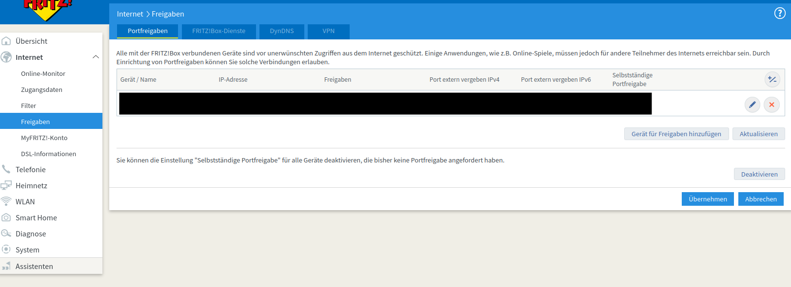 Im nächsten Schritt, der hier beschrieben wird, musst du dann die passende Portfreigabe auf der Bedienoberfläche deiner Fritzbox anlegen.